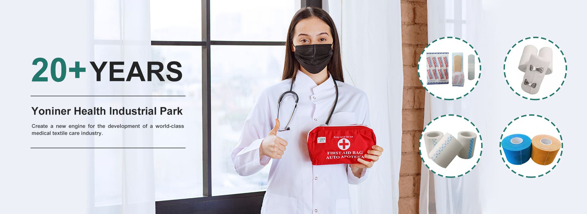 Yoniner เป็นผู้ผลิตเฉพาะสำหรับอุปกรณ์ทางการแพทย์ ผลิตภัณฑ์ปฐมพยาบาล และผลิตภัณฑ์ด้านความปลอดภัย ผลิตภัณฑ์หลักของเราครอบคลุมถึงประเภทของผ้าพันแผลและพลาสเตอร์ปิดแผล ผ้าปิดแผลทางการแพทย์ เทปผ่าตัด เทปกายภาพ เทปกีฬา ผ้าพันแผลยืดหยุ่น ผ้าพันแผลเครป ผ้าพันแผลปฐมพยาบาล ชุดปฐมพยาบาล และอุปกรณ์เสริมอื่น ๆ สำหรับชุดปฐมพยาบาล